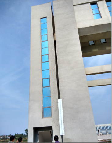 其中潦河渡槽進口右岸樓梯間占地面積為6.4m×2.2m,高14.11m,為三層框架結構,小型C25鋼筋混凝土擴大基礎,尺寸為5.4m×2m×0.5m。草墩河渡槽出口左岸樓梯間占地面積為6.4m×2.2m,高14.11m,為三層框架結構。小型C25鋼筋混凝土擴大基礎,尺寸為3.8m×1.8m×0.5m。右側樓梯間向下游側傾斜變形19.8cm,沉降16.2cm,左側樓梯間向外側傾斜變形19cm,沉降4.6cm,樓梯間周圍部位出現不同程度沉降變形跡象。