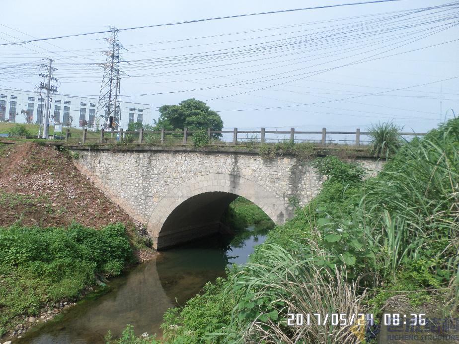 項目概況:國電江西電力有限公司萬安水力發(fā)電廠生活區(qū)南河橋是一座單跨上承式單波雙曲拱橋。為了解南河橋的結構現(xiàn)狀,判斷橋梁結構承載能力是否滿足安全通行進出廠重載車的荷載要求,2018年7月,中國國電集團江西電力有限公司萬安水力發(fā)電廠委托我公司技術人員對本橋進行現(xiàn)場檢測及靜、動載試驗,為后期橋梁使用、養(yǎng)護和加固提供依據(jù)。