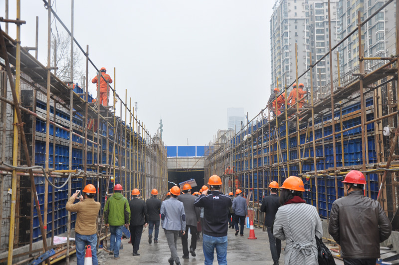 培訓期間,主辦方組織學員到武漢市三陽路地鐵過江通道參觀由武大巨成公司正在施工的后澆清水混凝土邊墻大型工程,萬雄衛教高和李北星教授在現場向參觀學員介紹了巨成公司專利技術后澆清水混凝土產品和技術。在武漢大學,學員們興致勃勃地參觀了納米尺度實驗室、水工實驗樓、建筑物檢測與加固教育部工程研究中心,陳明祥教授帶領研發團隊講解了形狀記憶合金及納米尺度相關實驗設備和研究基本內容。學員到武大科技園參觀了湖北省第一棟清水混凝土高層建筑——巨成大廈,武漢大學校董、巨成公司董事長高作平教授、常務副總經理閔啟武熱情接待,并向學員介紹了公司的各項情況。
