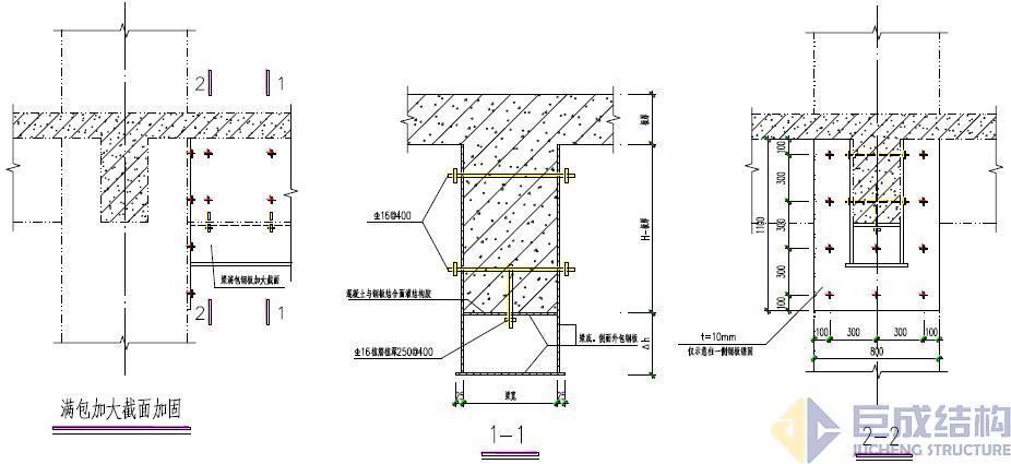 本項設計主要解決由于建筑結構功能改變需要提高原設計使用荷載,有時會遇到大幅度提高使用荷載的情況,導致原結構主要承重構件承載力不滿足規范要求,采用傳統的加固方法提高結構承載力又非常有限,急需采取有效的加固方法來解決此類工程問題。