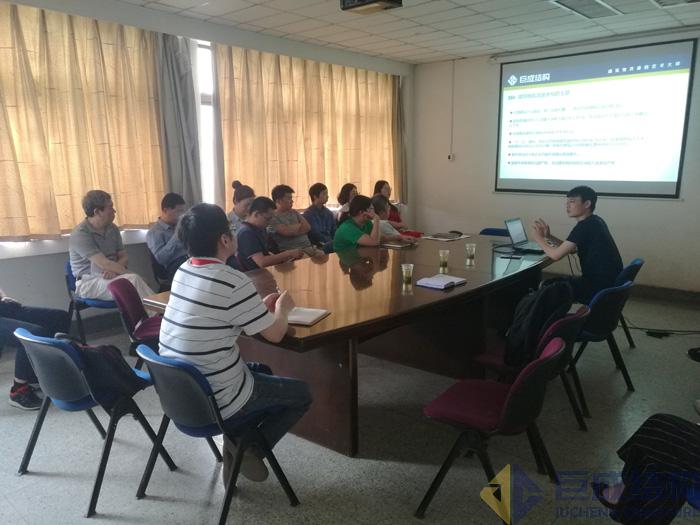 六場科技交流分別由江蘇省江都水利工程管理處副主任周燦華、江蘇省水利勘測設(shè)計研究院有限公司副總經(jīng)理陶瑋、南京市政設(shè)計研究院有限責(zé)任公司總經(jīng)理助理黃曉東、南京金凌石化工程設(shè)計院有限公司總工黃月年、江蘇省化工設(shè)計院有限公司主任工程師鄭德勝,以及南京揚子石油化工設(shè)計工程有限責(zé)任公司主任工程師潘健主持召開,每場均20余人參會,包括各單位的規(guī)劃、建筑、結(jié)構(gòu)相關(guān)專業(yè)人員。主講人高老師和湯博士從建筑物改造發(fā)展歷史與現(xiàn)況、清水混凝土技術(shù)、巨成涂料和涂裝體系、建筑物加固特種技術(shù)(包括糾偏與平移技術(shù)、鋼滑道頂升增層技術(shù)、擴孔自鎖錨固技術(shù)、粘結(jié)型鋼加固技術(shù))、建筑物改造實際案例,以及檢測鑒定與設(shè)計咨詢等方面,詳細(xì)地介紹了我公司在建筑物改造方面取得的豐碩成果。
