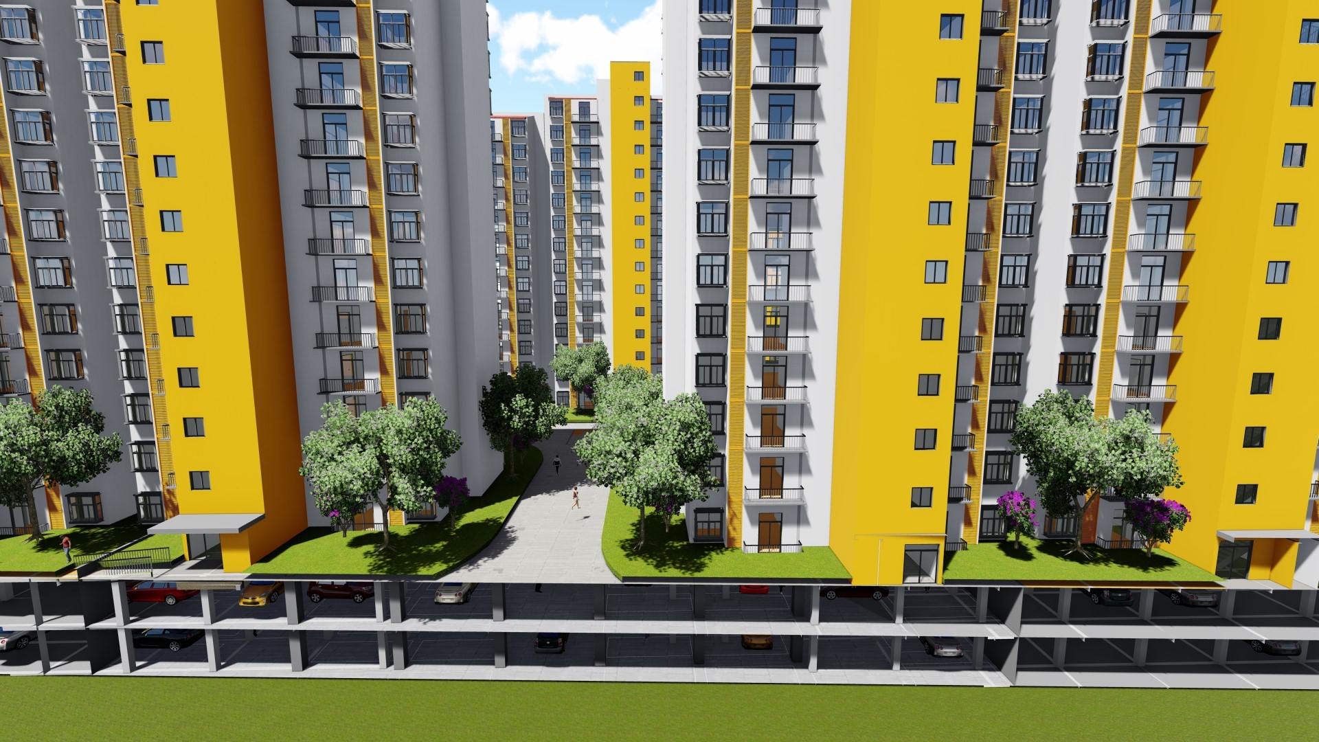 將小區(qū)內(nèi)每棟樓都向上頂升一層或兩層,樓與樓之間用新建框架相連,這樣就形成了一個(gè)人為建成的底層大空間,從低層加裝電梯至頂層,這些空間可以用來設(shè)置停車場,托兒所、公共衛(wèi)生間、社區(qū)養(yǎng)老等,沿街的空間可以做商鋪。上部可以修建園林景觀,大樓外觀翻新;