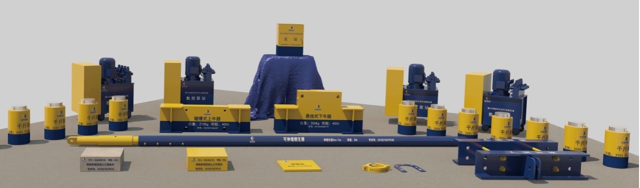 巨成公司自主研發了基于鋼滑道技術的群控同步頂升系統及成套設備,可應用于建筑物的頂升、糾偏、平移及旋轉等工程。該成套設備包括同步頂升控制主站、數控泵站、液壓千斤頂、配電柜、操作站等主要設備,還包括鋼滑道、可伸縮鋼支撐、上牛腿、下牛腿、高精高強混凝土墊塊、千斤頂受力環等配套設備,如圖1。