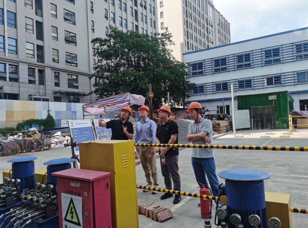 王院長一行參觀了巨成群控同步頂升工程試驗項目現(xiàn)場,巨成結構周志勇介紹了頂升試驗的背景和目的,并對鋼滑道頂升技術原理和群控同步頂升大型數(shù)控設備做了詳細講解。雙方就鋼滑道頂升技術原理和應用場景展開了深入的討論和交流,并一致認為巨成群控同步頂升技術能夠在老舊小區(qū)改造等領域發(fā)揮重大作用。來賓還參觀了清水混凝土樣板墻以及巨成總部辦公樓清水混凝土實體工程,認真聽取了清水混凝土施工方法、施工工藝等。
