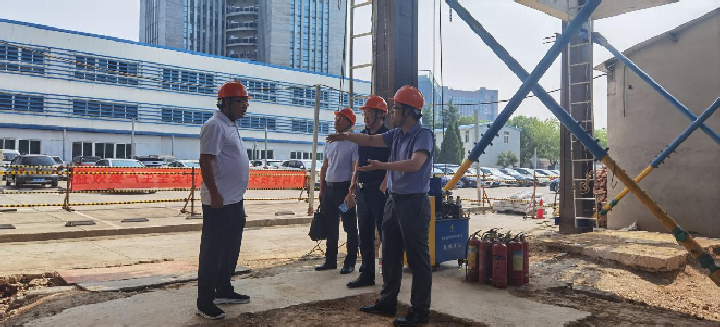 瞿總一行首先參觀了巨成群控同步頂升工程試驗項目現場,對巨成頂升增層技術嘆為觀止,對巨成頂升增層技術能夠很好的解決老舊小區停車難的問題,認為該技術能在城市更新、老舊小區改造領域發揮重大作用。