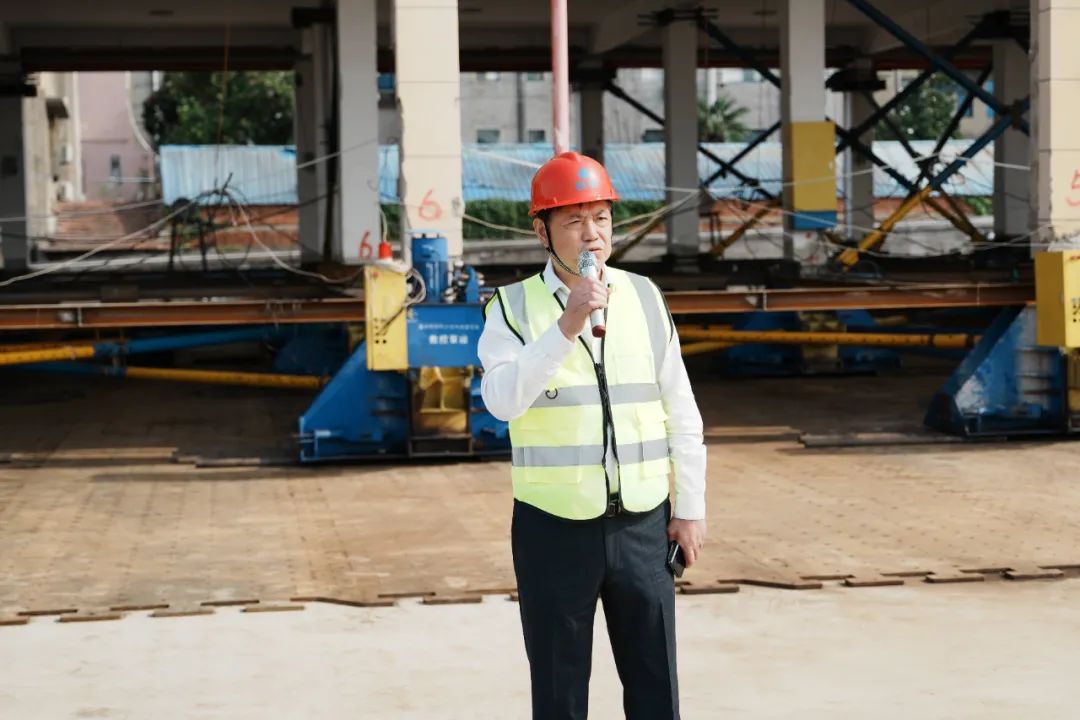 巨成公司董事長高作平代表公司感謝了業主、總包、監理的強力支持。他指出,今天既是鄂州電廠消防大樓移位工程成功的慶典,更是鋼滑道剛性平面軸心旋轉法與鋼滑道剛性軸線同步頂推平移法工程試驗成功的新聞發布會。此次鄂州電廠消防站遷移工程的成功實施,是巨成鋼滑道理論在建筑物旋轉、平移領域的創新應用,是巨成公司鋼滑道理論在頂升、頂降、糾偏之后的進一步完善與拓展。如果將此前的移位技術比作公路運輸,鋼滑道理論的移位相當于鐵路問世。巨成鋼滑道理論在建筑物改造領域潛力巨大,巨成將一如既往地在建筑物改造領域拓展發力,為建筑業新質生產力貢獻巨成力量。